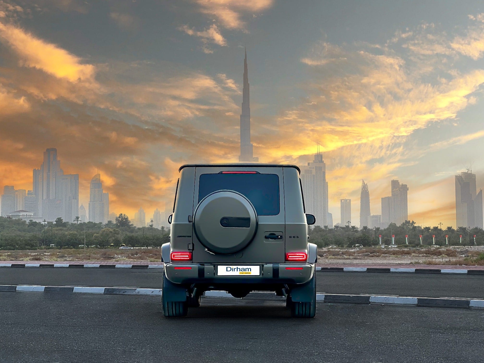 Drive the legend. Choose G63 rental Dubai and experience the 2022 Mercedes-AMG Green Edition – available now at Dirham Rent a Car.